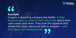 - Data Engineers are essential for building the infrastructure that supports advanced analytics and AI.